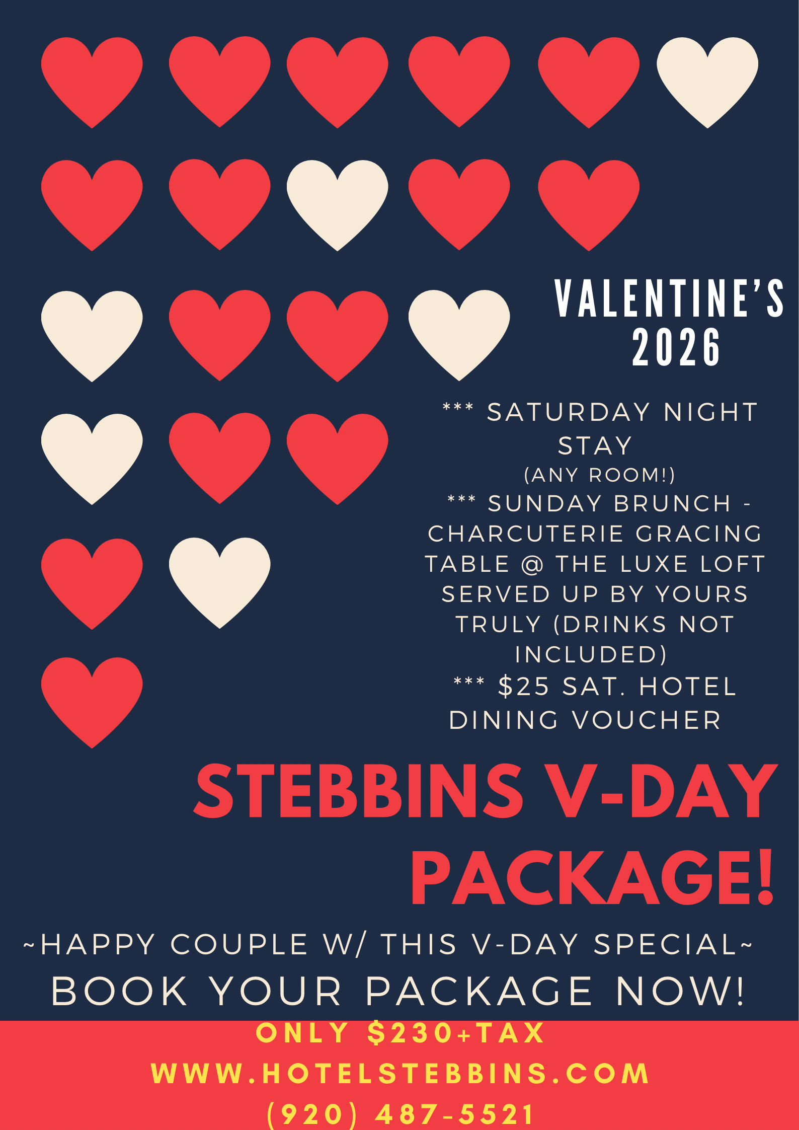We often like to spice it up with fun packages and events that many times will include other great local businesses in Algoma as well. Check out this page often for updates on fun value packed offerings!!